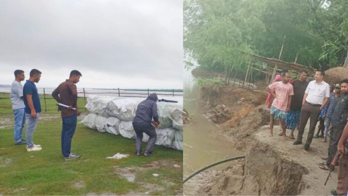 In addition to this assessment, Dibakar Nath, the Deputy Commissioner of Dhubri, along with key officials, the Circle Officers from Agomani and Golakganj, conducted an on-site inspection of the erosion-affected villages of Pub Ratiadaha and Bhangaduli within the Binnachara Pt III village.