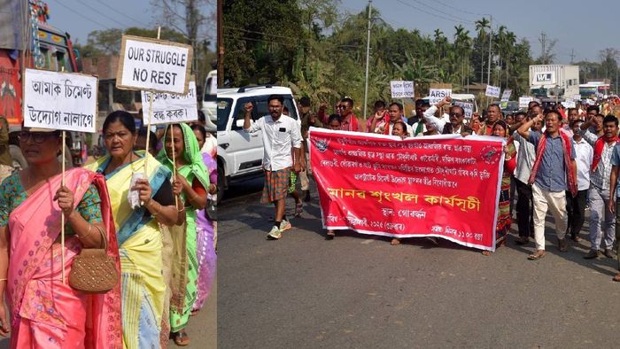 Titled 'Manab Srinkhol', the rally was organised by the Chaygaon and Bamunigaon regional units of All Rabha Students' Union (ARSU), Chaygaon AASU, land conservation society, comprising Choudhurykhat, Kawoimari, Dakhin Bankakata, Belguri, Dhowargaon villages, among others.