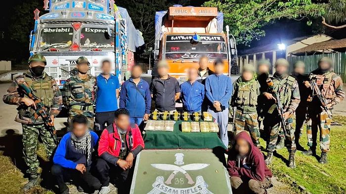 Acting on specific intelligence, Assam Rifles and the Directorate of Revenue Intelligence (DRI) carried out a joint operation on November 20, 2025, and stopped two Tata trucks suspected of transporting narcotics.