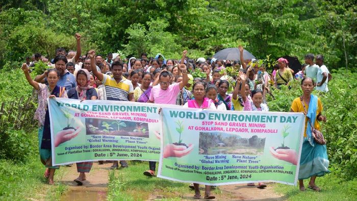 On World Environment Day, villagers from Gohalkona, Jongakhuli, Komaduli, Lepgaon, and Katholpara staged a significant protest rally in Lepgaon, demanding an end to sand gravel mining in the Boko River. Organized by the Border Area Development Youth Organisation, the rally also featured tree planting activities, drawing hundreds of participants, including women and children, in a day-long demonstration of environmental concern.