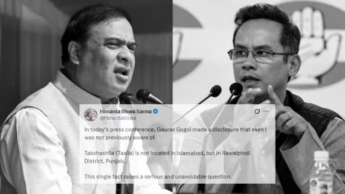 According to Sarma, Gogoi's Pakistani visa specifically authorised travel only to Lahore, Karachi and Islamabad. "If his Pakistan visa explicitly permitted travel only to Lahore, Karachi and Islamabad, how did he visit Takshashila, which lies outside the Islamabad Capital Territory and squarely within Rawalpindi District?" Sarma wrote on social media.