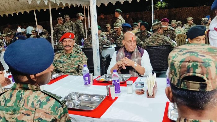 Rajnath Singh celebrates Diwali with armed forces in Assam's Tezpur, lauds their spirit and courage