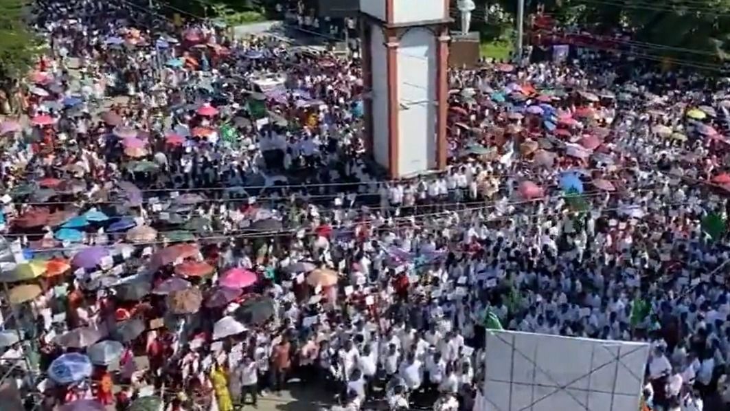 Protesters from across the district converged at the Chowkidinghee intersection after marching from four major points, causing heavy traffic congestion throughout the day. Anticipating disruptions, several schools declared a holiday, officials confirmed.