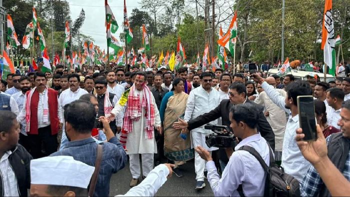 Accompanied by Assam Pradesh Congress Committee president Bhupen Borah, Congress leader Pawan Singh Ghatowar, Sivasagar MLA and Raijor Dal chief Akhil Gogoi, Congress leader Rakibul Hussain and Debabrata Saikia Gaurav Gogoi filed his nomination papers today.