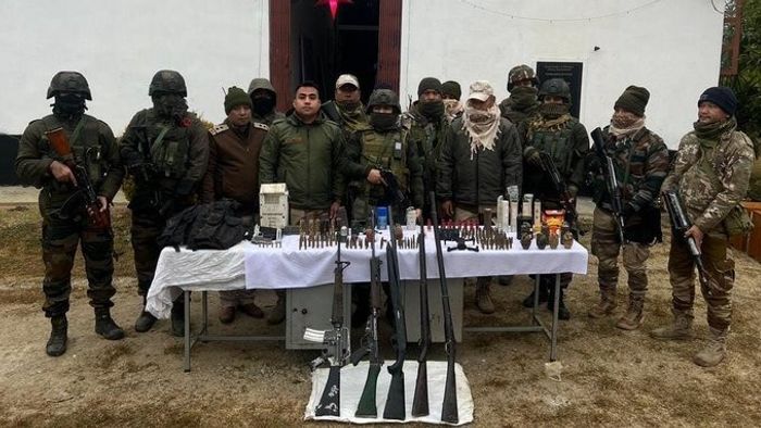 Security forces in Manipur’s Kakching district on December 31 recovered six firearms and a substantial cache of explosives and ammunition during an intelligence-led operation, officials said.