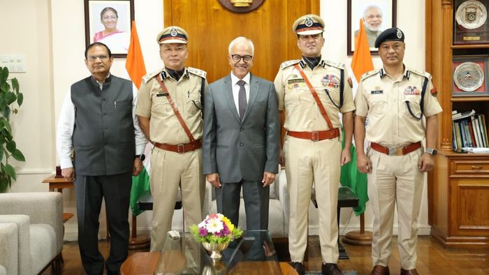 The Governor of Manipur, Ajay Kumar Bhalla, presided over a formal rank pipping ceremony at Raj Bhavan, Imphal, celebrating the promotion of two distinguished Indian Police Service (IPS) officers, Rakesh Balwal, IPS, and Ningshem Vashum, IPS.