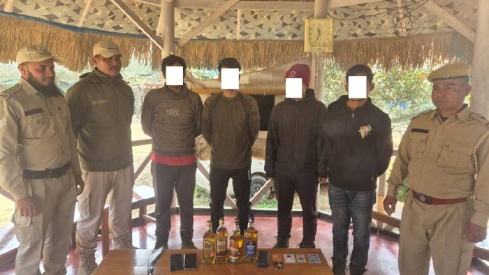 Security forces recovered a Khukri (traditional blade), two mobile phones, one power bank, four liquor bottles, two debit cards, one Aadhaar card, one voter ID, and one PAN card from their possession.