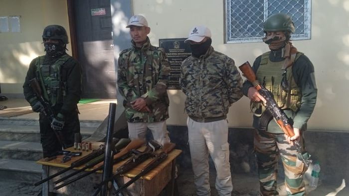 Manipur security forces recovered a cache of firearms and ammunition from a hill range in Kangpokpi district, highlighting continued concerns over the movement of illegal weapons in remote areas.