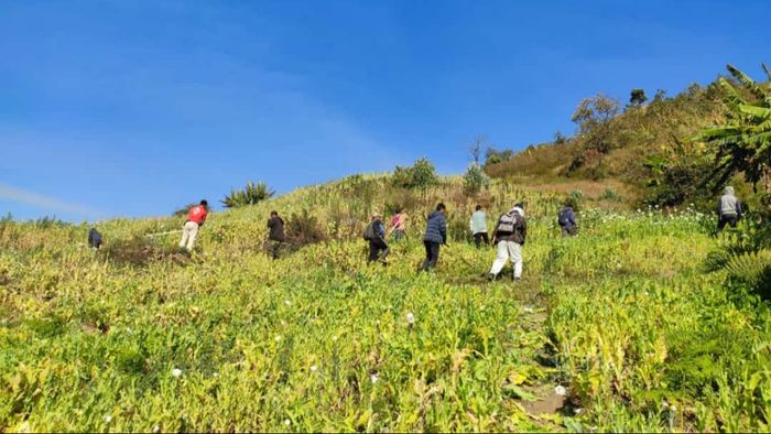 In a significant move to strengthen the state government's War on Drugs initiative, WTR Ukhrul, in partnership with Katho Katamnao Long, has initiated a poppy destruction operation in Laho Village today.