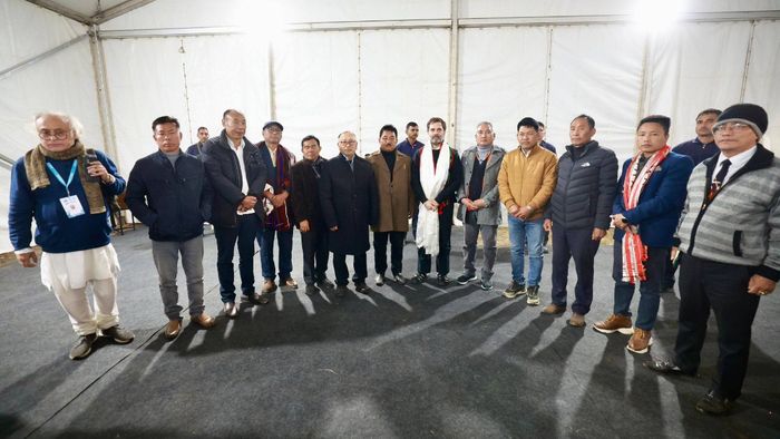 A delegation of the Naga Hoho met with Rahul Gandhi upon his entry into Nagaland while leading the Bharat Jodo Nyay Yatra. The meeting took palce today evening at the campsite at Khuzama ground in Nagaland, where the Naga Hoho leaders submitted a memorandum to Gandhi.