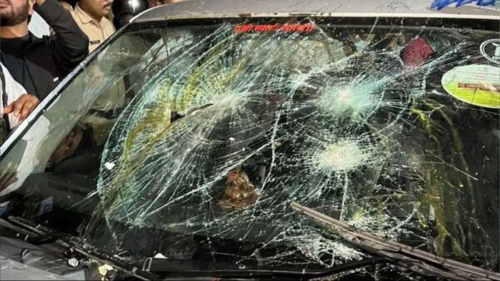 Videos of the incident show the vehicle's windscreen and side panels being damaged by BJP workers, who also threw ink on the car. This was followed by a brief altercation between Maha Vikas Aghadi (MVA) workers and BJP activists until police intervention.