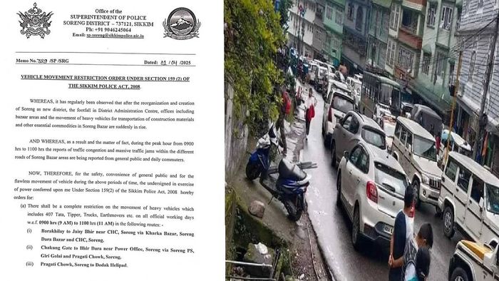 Sikkim: Vehicle movement restrictions imposed in Soreng district to address traffic congestion