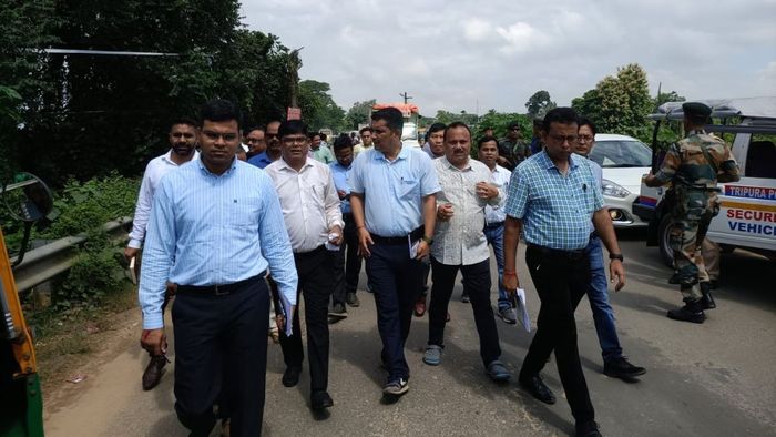 The delegation reviewed the ground situation, including the collapsed section of the national highway on the Agartala-Sabroom road and the flood-hit Govindamath area in Manughat.