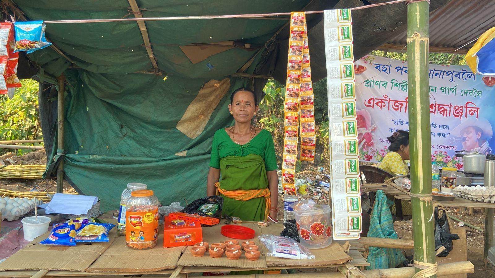 Take Juna Pathor, a 60-year-old entrepreneur. Yes, entrepreneur, because words like that aren’t reserved only for people visible on the internet. Juna ba started a small shop just outside Zubeen da’s cremation site. Holding back her tears, she said,