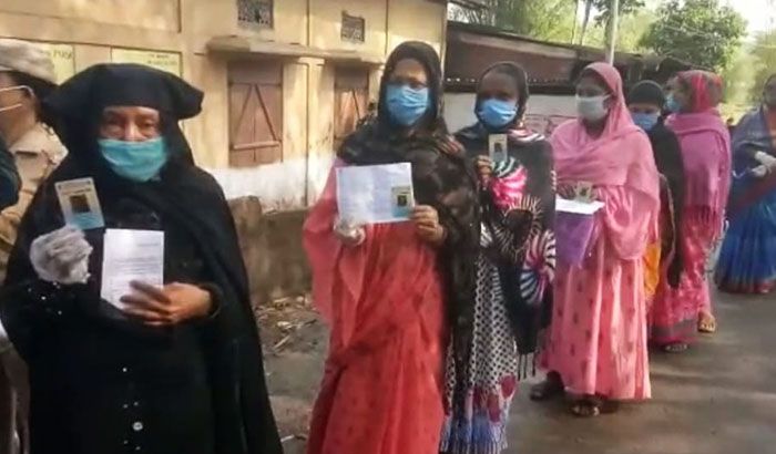Strict COVID-19 protocol is being enforced at the polling centres due to the surge in virus cases and detection of several new strands of the virus which has triggered a fresh set of concerns.