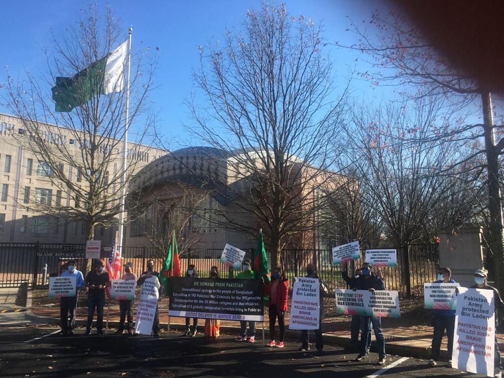 WASHINGTON DC: A Bangladeshi organisation based in the United States along with other South Asian minorities on Monday held a protest outside the Pakistani Embassy in Washington, demanding an apology for the 1971 ‘genocide’ named Operation Searchlight.