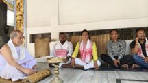 pm borrisUK Prime Minister Boris Johnson tries his hand on the 'Charkha' at Sarbarmati Ashram in Ahmedabad, Gujrat.