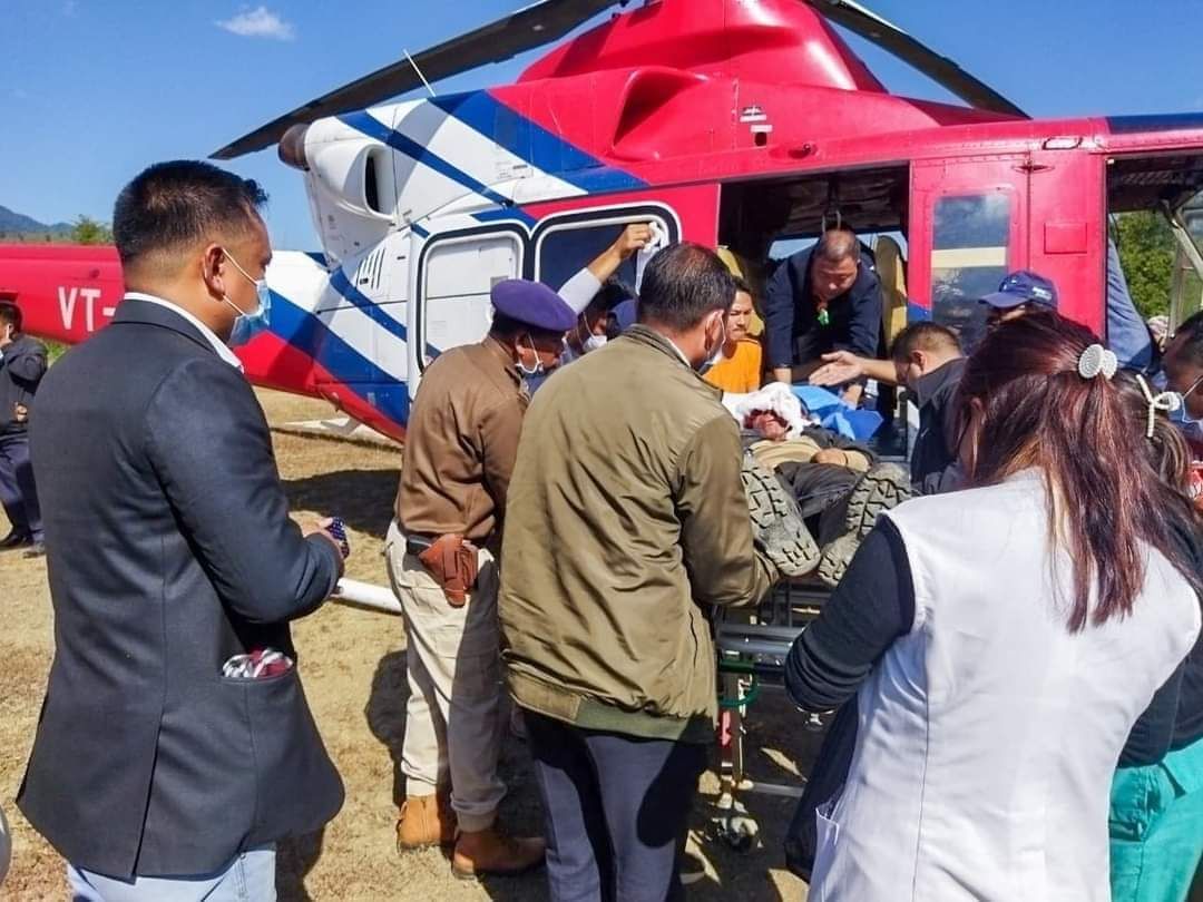 Under the prompt instruction of Chief Minister N Biren Singh, critically injured security personnel was airlifted to Imphal for better treatment.