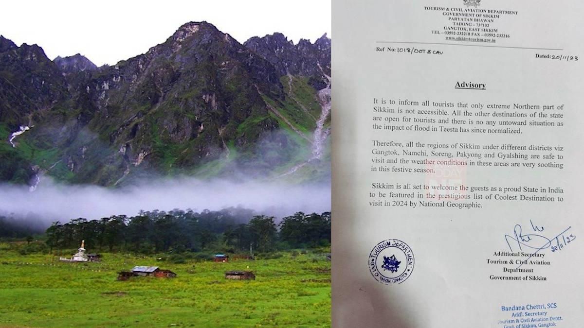 According to the official notification, "It is to inform all tourists that only the extreme Northern part of Sikkim is not accessible. All other destinations of the state are open for tourists, and there is no untoward situation as the impact of the flood in Teesta has since normalized."